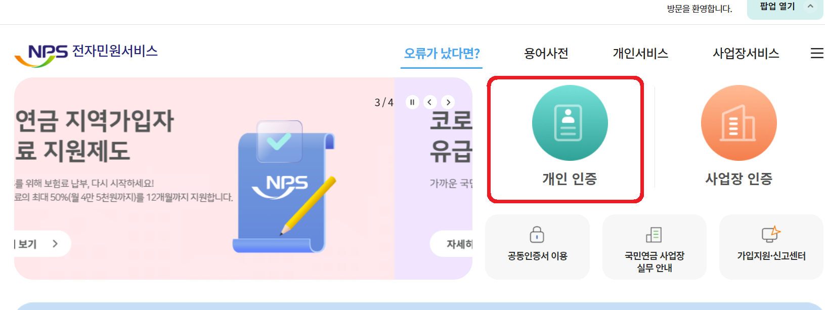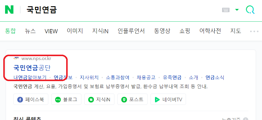 먼저 포털에서 국민연금공단을 검색해서 접속을 하거나 위의 바로가기 링크를 클릭합니다.