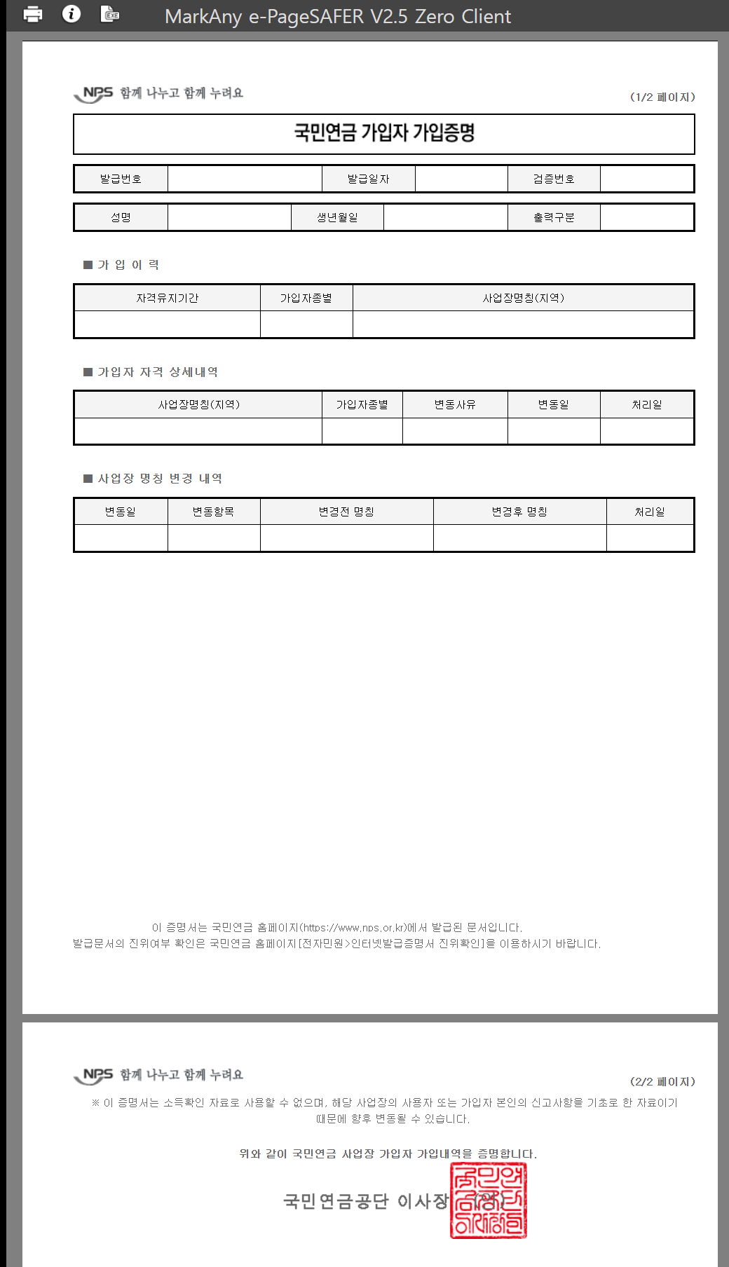 프린터발급, 팩스전송, 전자증명서 다 가능합니다.